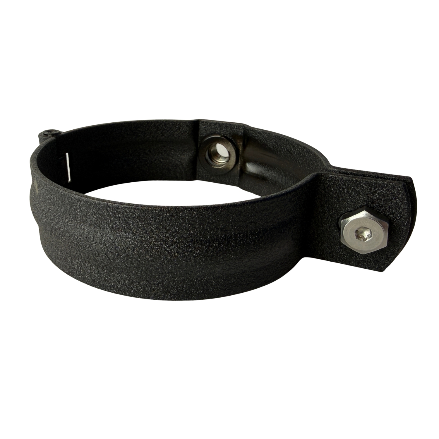 Gecoat aluminium gootbeugel voor montage op een boeiboord door middel van een montageplaat.