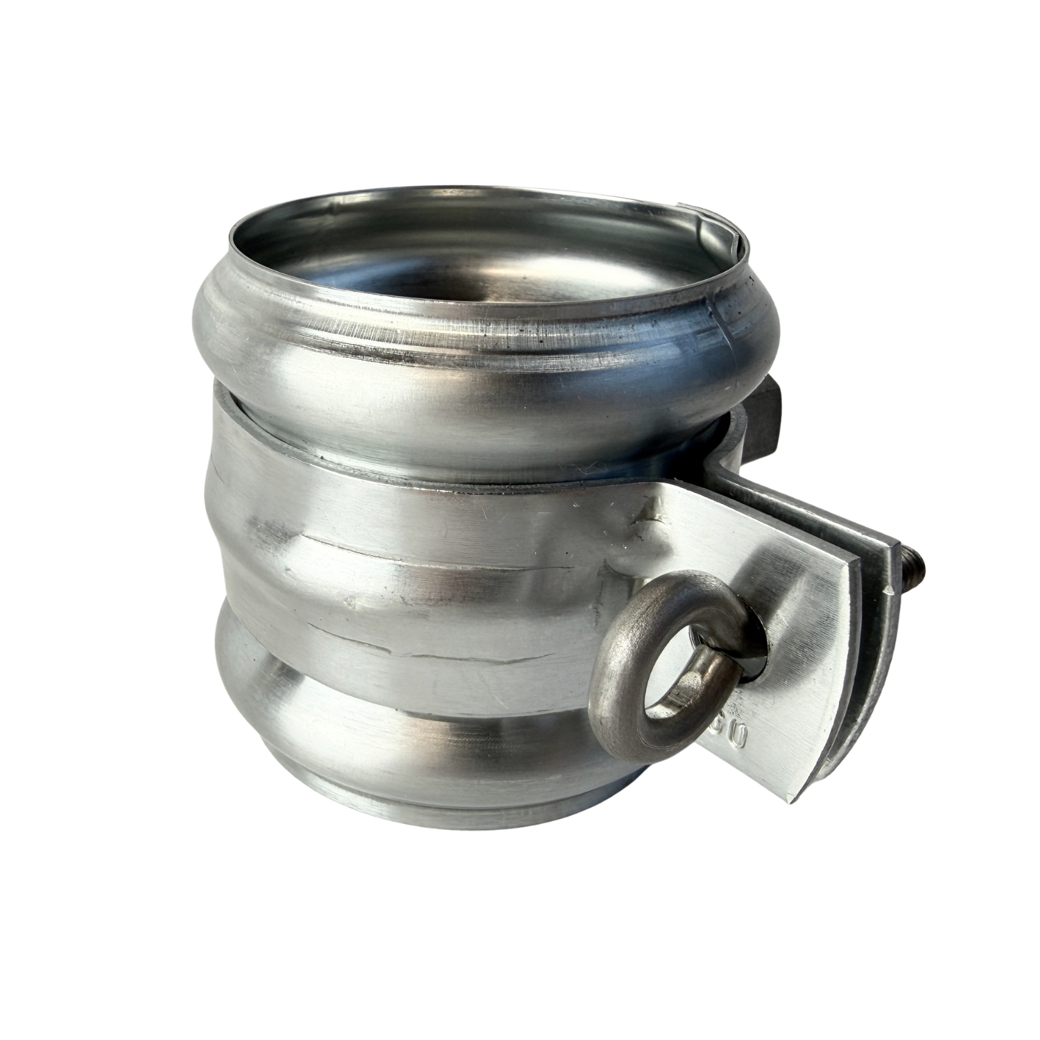 Het verbindingsstuk is aan de onderzijde passend in en aan de bovenzijde passend over.