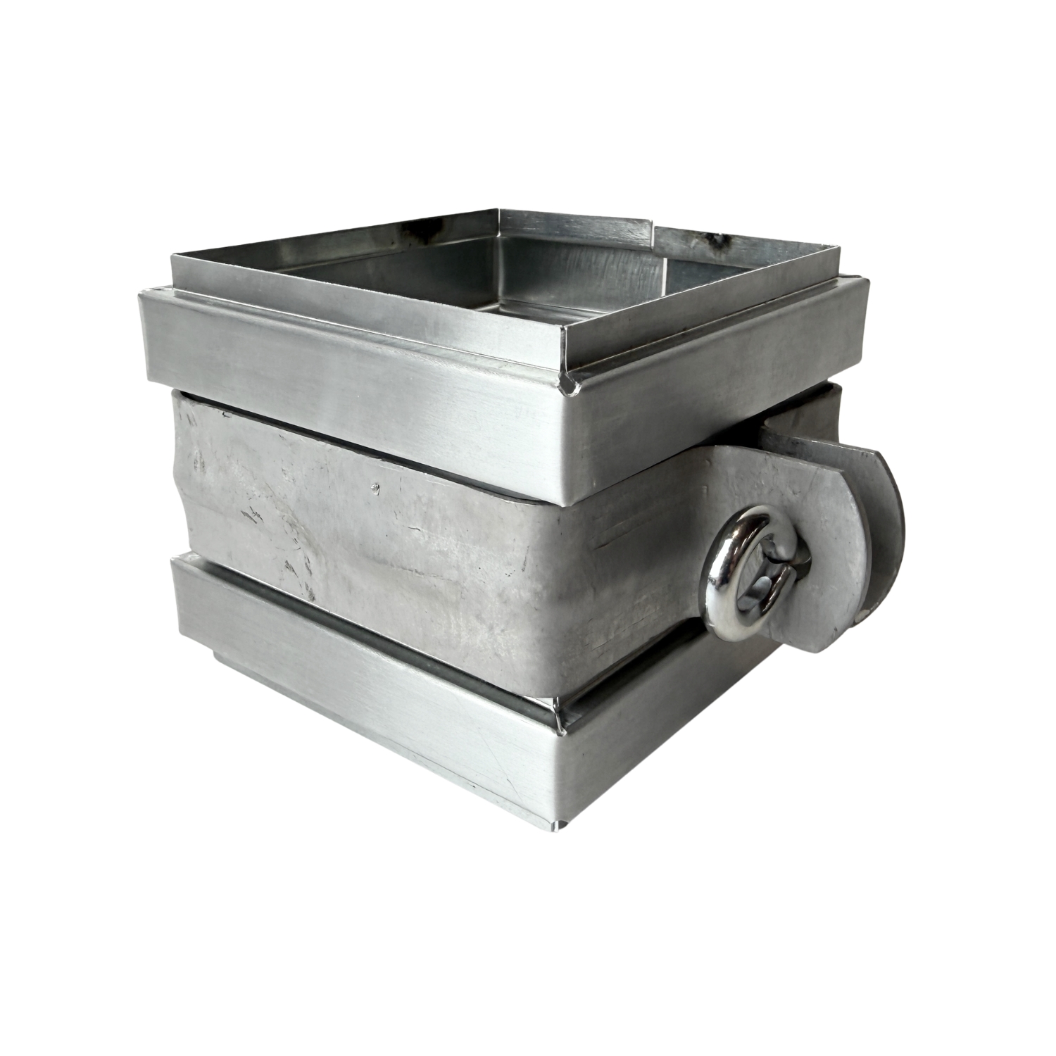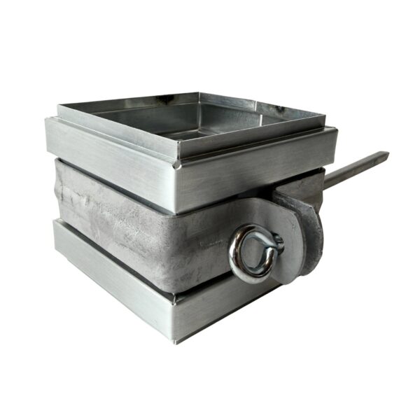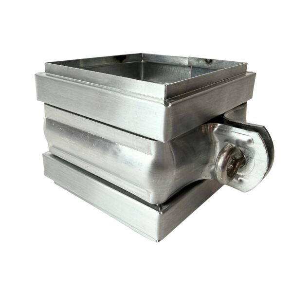 Vierkanten zinken regenpijp beugel in zink uitgevoerd met RVS M10 moer.