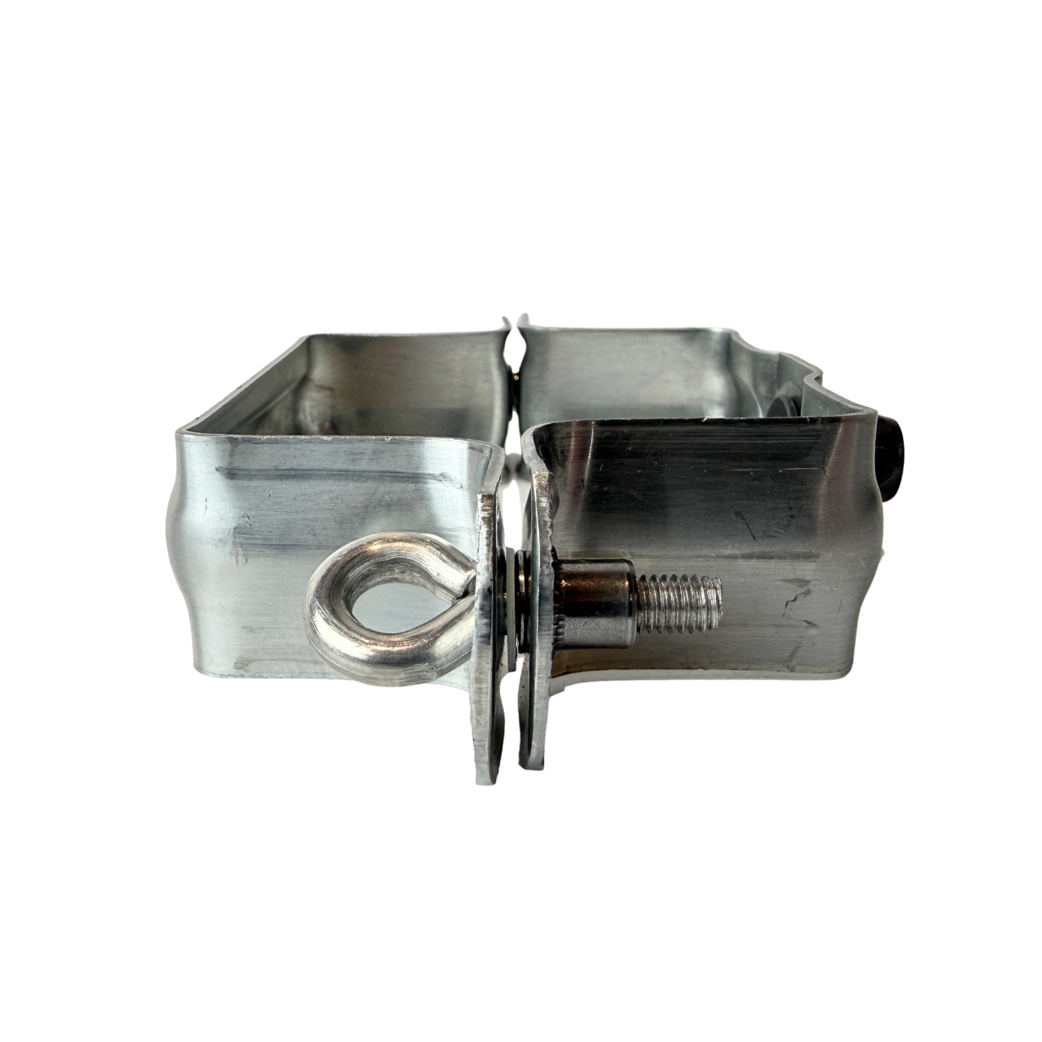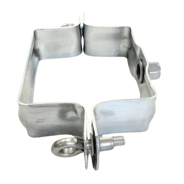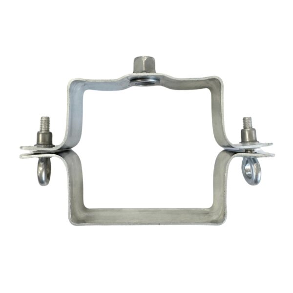 Vierkanten zinken regenpijp beugel in zink uitgevoerd met RVS M10 moer.